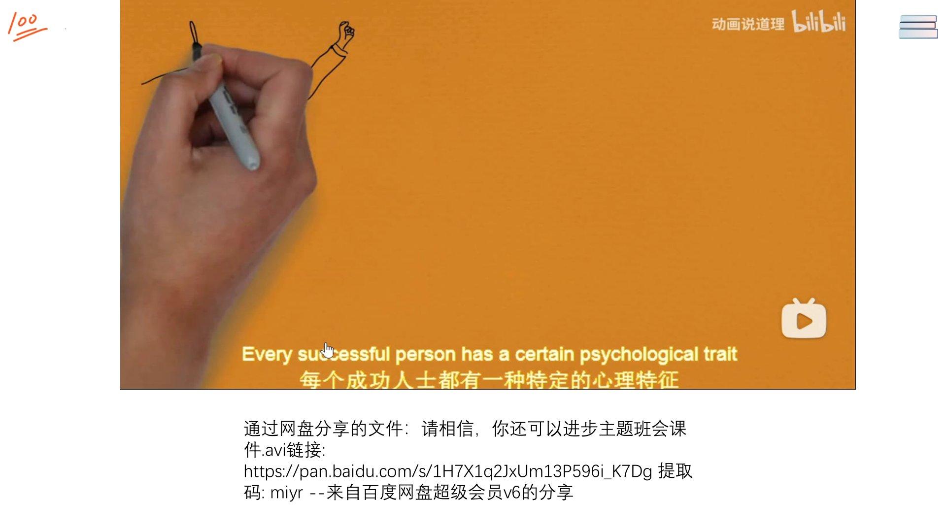 通过网盘分享的文件:请相信,你还可以进步主题班会课件.avi 链接: https://pan.baidu.com/s/1H7X1q2JxUm13P596i_K7Dg 提取码: miyr --来自百度网盘超级会员v6的分享